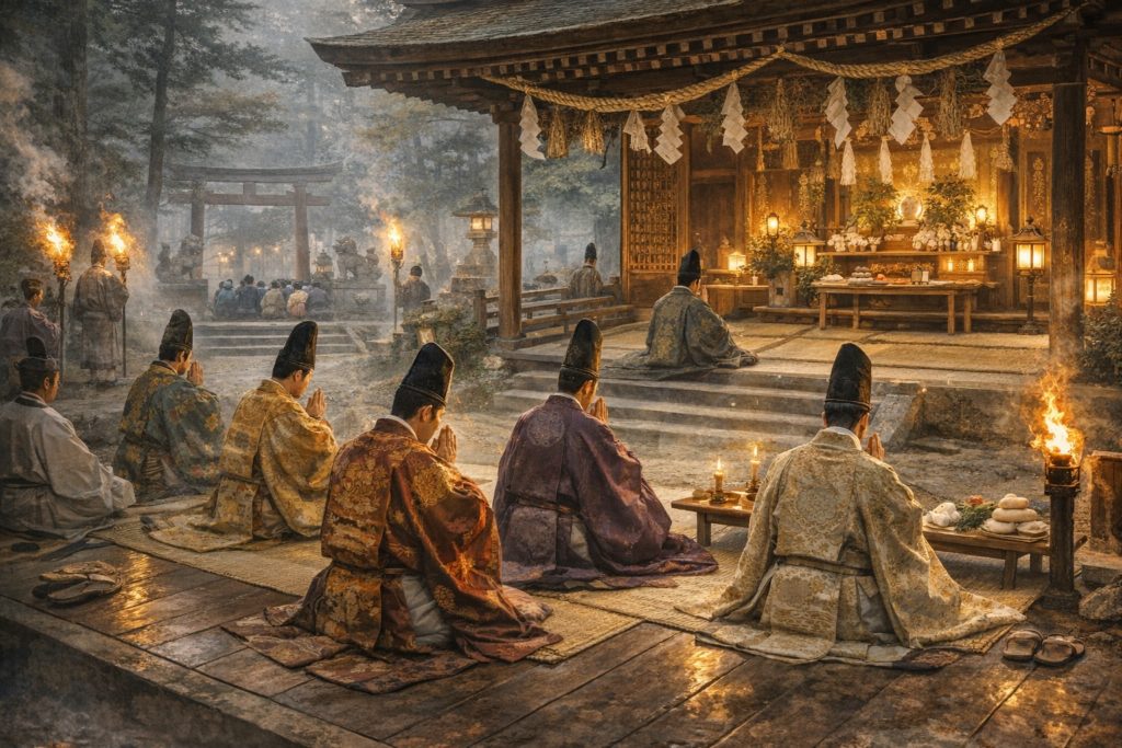 農村では、家の代表(家長)や村の長が中心となり、神社に籠もって新年の豊作や無病息災を祈願しました。